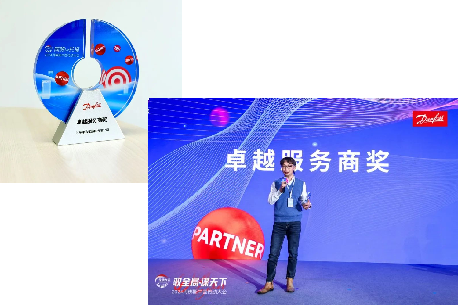 頒獎(jiǎng)晚宴上,上海津信變頻器有限公司憑借優(yōu)質(zhì)的服務(wù)水平和業(yè)績(jī),榮獲丹佛斯2024年度“卓越服務(wù)商獎(jiǎng)”。總經(jīng)理徐祖頡先生表示:“一直以來(lái),上海津信始終秉持 “走技術(shù)和服務(wù)的路線,以客戶(hù)為導(dǎo)向” 的理念,將技術(shù)和服務(wù)視為公司發(fā)展的核心驅(qū)動(dòng)力。本次獲獎(jiǎng)不僅是對(duì)我們工作的高度認(rèn)可,更是對(duì)我們持續(xù)深耕技術(shù)服務(wù)領(lǐng)域的激勵(lì)。未來(lái),我們期望與丹佛斯進(jìn)一步深化合作,不斷提升服務(wù)水平,共同開(kāi)拓更廣闊的市場(chǎng),為客戶(hù)創(chuàng)造更大的價(jià)值。”