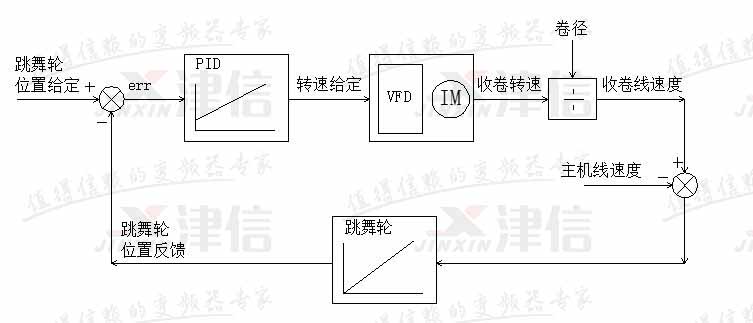 可見(jiàn)收卷線速度同步控制的控制要求,可以轉(zhuǎn)化為跳舞輪位置控制的要求。
