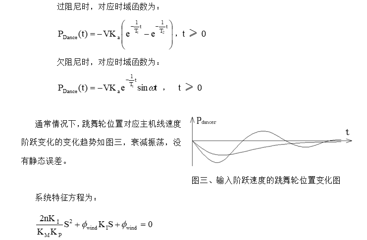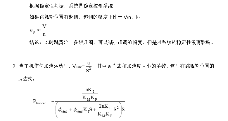 上面的方程表明跳舞輪位置反饋控制等效于以鋼簾線的線速度為輸入變量的二階控制系統(tǒng)。下面就主機(jī)工作于勻速和勻加速(減速)兩種不同的工況分別分析跳舞輪位置控制的控制特性。